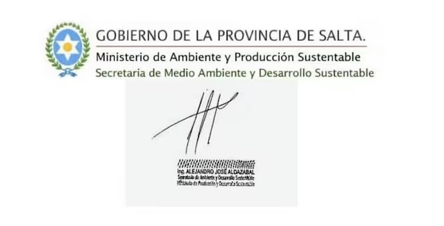 El permiso — difundido por El Tribuno de Salta y otros medios locales — presenta una supuesta firma atribuida al secretario de Ambiente, Alejandro Aldazábal. Al desatarse el escándalo, el funcionario fue terminante. “No autoricé nada, ese documento es falso”, aseguró, y confirmó que ya radicó una denuncia penal por falsificación de instrumento público en la Fiscalía Penal de Cafayate.