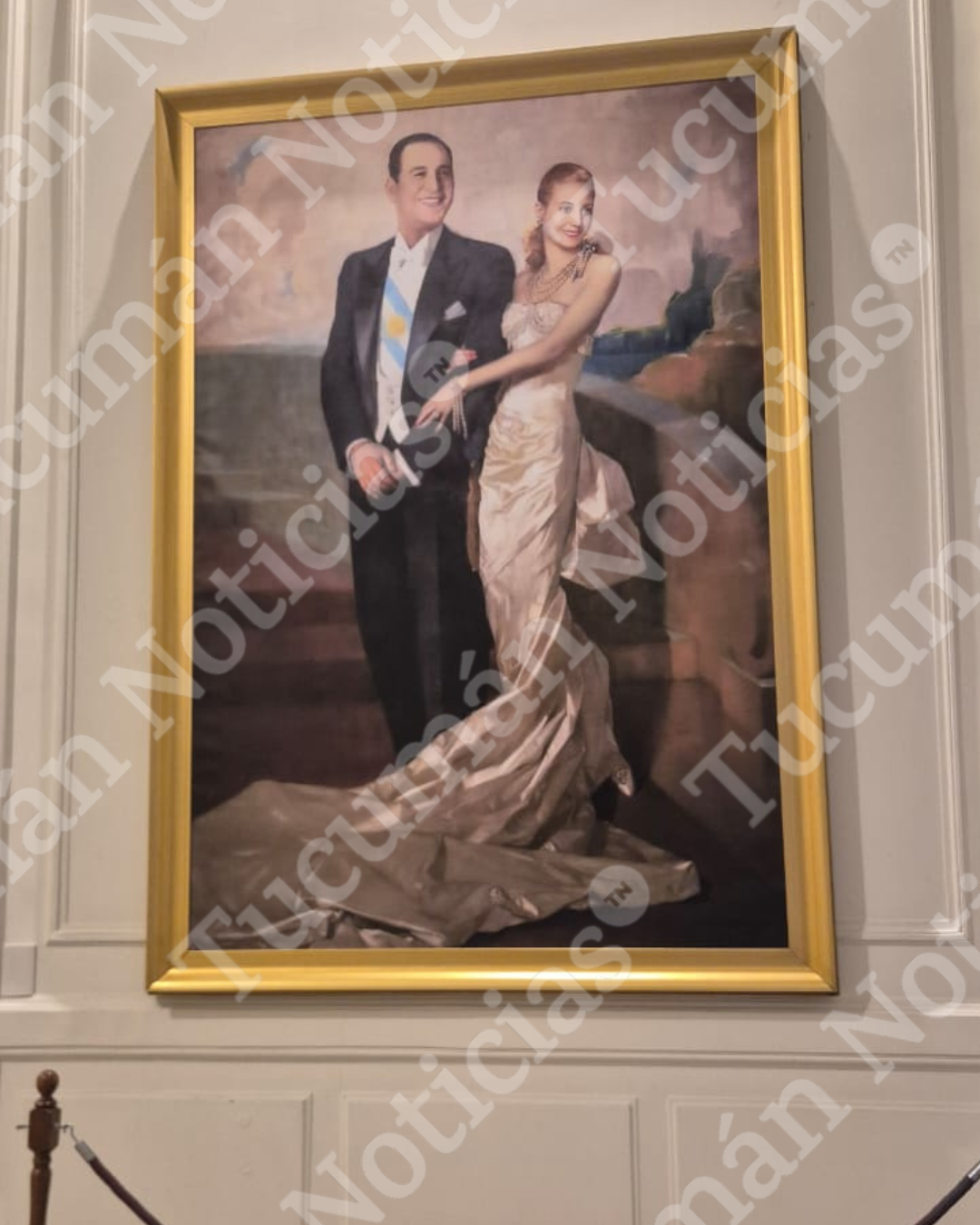 “Se detectaron algunas fallas estructurales, por lo que optamos por reforzarlos y ponerlos al resguardo”, se sinceró un funcionario ante este medio. El retrato de la familia Perón es una copia del original en óleo sobre tela de 220 centímetros de alto por 150 centímetros de ancho de 1948 que se encuentra exhibido en el Museo de Casa Rosada. Se trata de la última obra del autor que sobrevivió a la destrucción de la simbología peronista en el marco del proceso de “desperonización” tras el golpe de Estado de 1955 y que refleja al Primer Mandatario, con la banda y sonriente, acompañado por “Evita”.