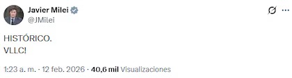Minutos después de que la iniciativa obtuviera la media sanción, el jefe de Estado compartió un mensaje victorioso en sus redes sociales. Tras calificar al hecho de “histórico”, concluyó con su típica frase “¡Viva la libertad, carajo!“.