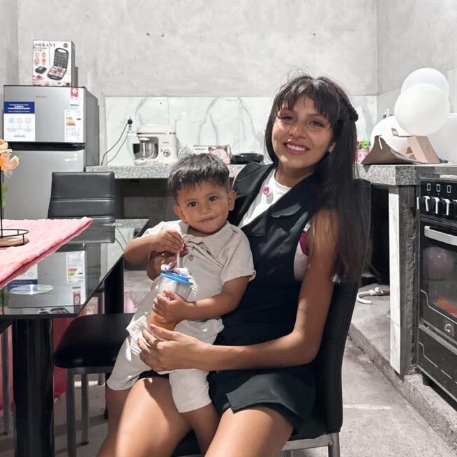 A la joven se la ve en las imágenes emocionada y con su bebé. Una casa totalmente equipada con cocina, heladera, mesa, sillas. Además un kiosco que lleva el nombre de “Kiosco Maia” con el que ella podrá hacer su propios ingresos.