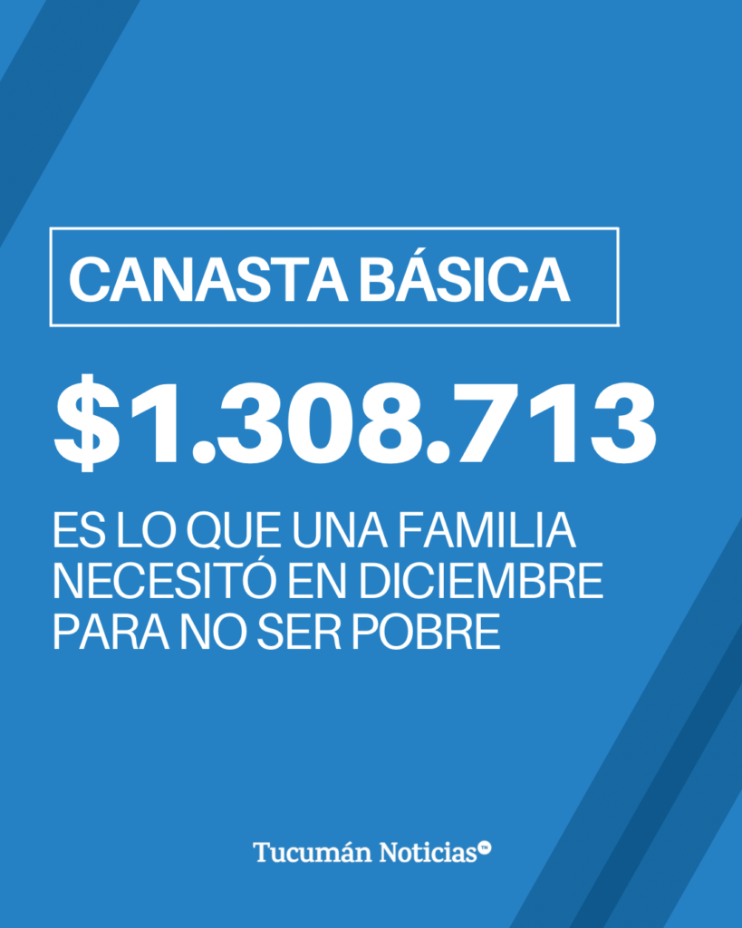 En diciembre del 2025 una familia compuesta por dos adultos y dos menores, necesitó contar con ingresos de $1.308.713 para no ser pobre y $589.510 para no caer en la indigencia, de acuerdo con los datos de Canasta Básica Total (CBT) y Canasta Básica Alimentaria (CBA) informados por el Instituto de Estadísticas y Censos (INDEC).