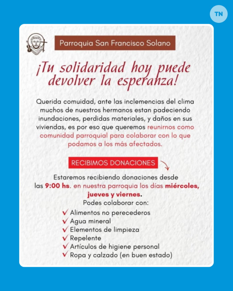 Tras las intensas precipitaciones que dejaron a cientos de familias bajo el agua, organizaciones comunitarias, escuelas y clubes impulsan colectas de urgencia. Conocé los puntos habilitados y qué insumos son los más requeridos.