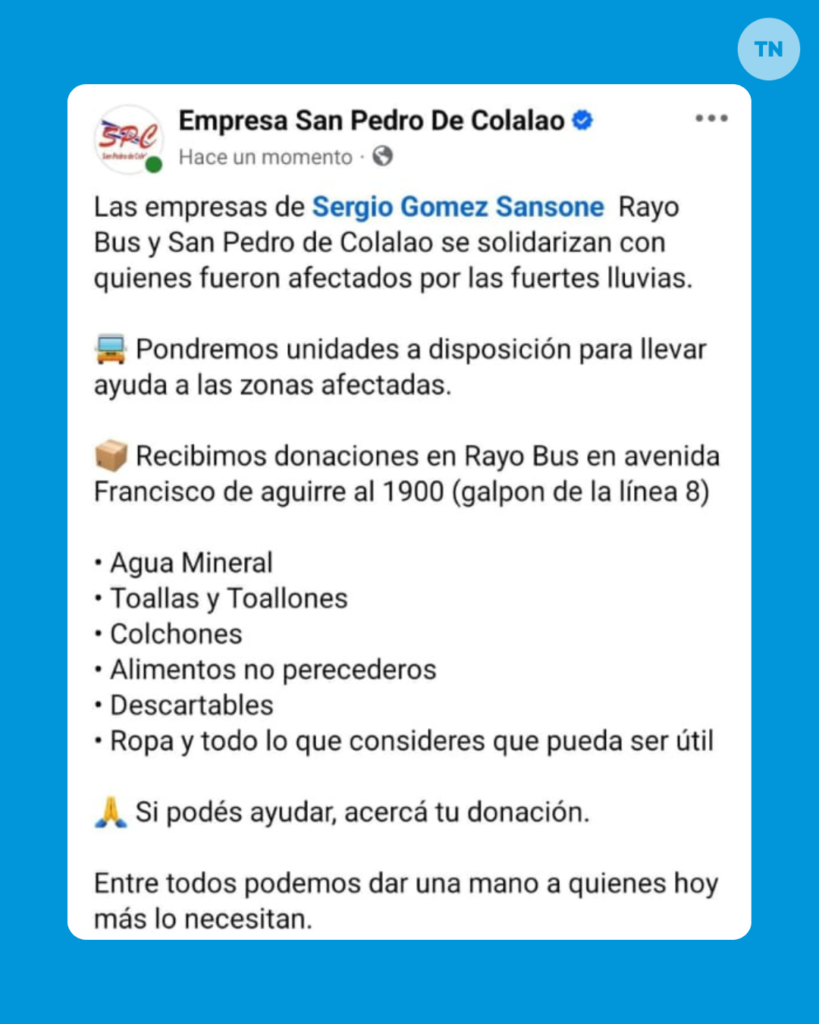 Las campañas buscan reunir los elementos más urgentes para que el Comité de Emergencia y las organizaciones puedan acompañar a las familias durante las horas más críticas de la contingencia climática. ¡Toda ayuda suma!