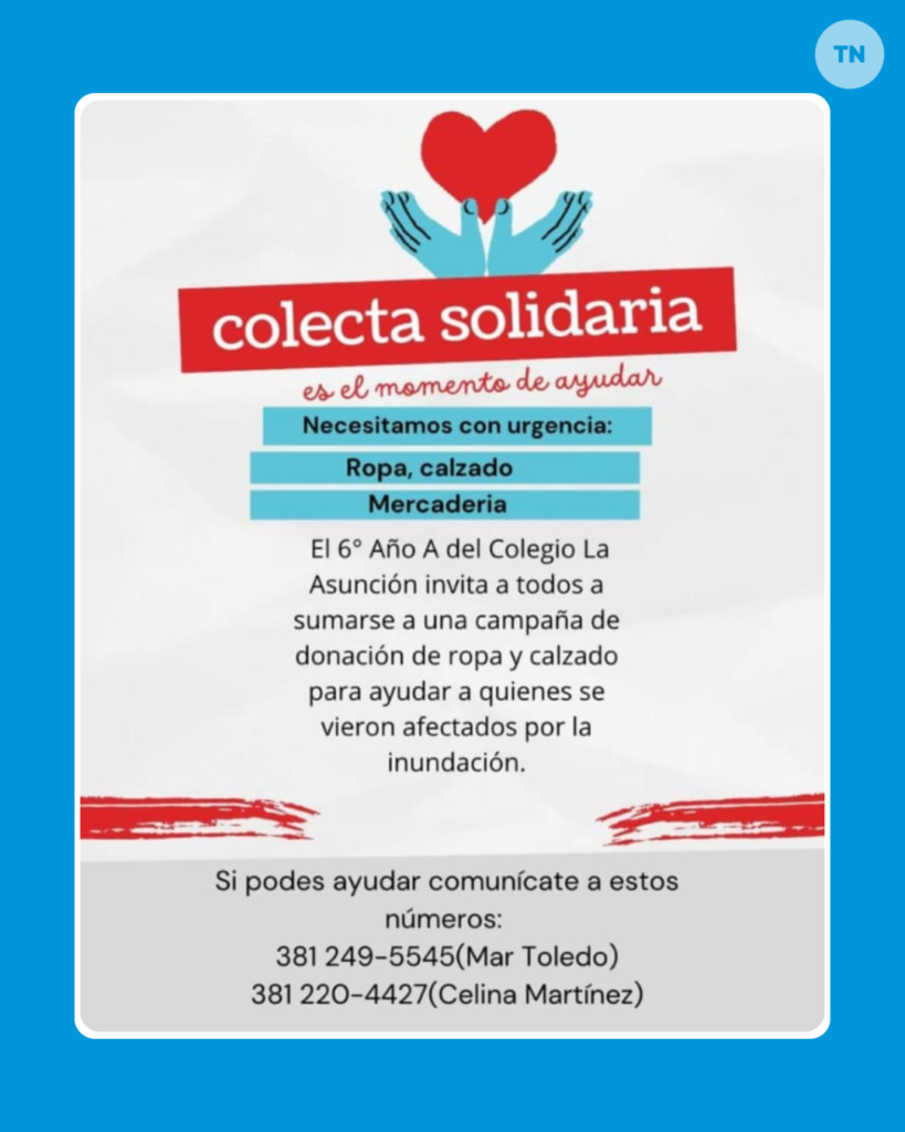 Frente a este dramático escenario, que dejó a cientos de familias habiendo perdido gran parte de sus pertenencias, la solidaridad tucumana no tardó en activarse. Diferentes organizaciones, instituciones educativas y clubes deportivos ya pusieron en marcha campañas de urgencia para asistir a los damnificados.