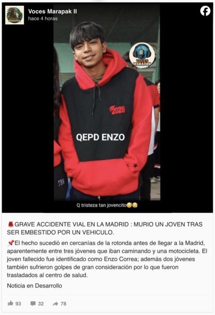 Como consecuencia del impacto, uno de los jóvenes, un adolescente de 16 años domiciliado en La Madrid, falleció en el acto. Los otros dos menores que lo acompañaban, también de 16 años, sufrieron lesiones, aunque en principio no serían de gravedad.