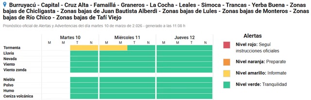 El Servicio Meteorológico Nacional mantiene una alerta amarilla por precipitaciones previstas desde la tarde del martes hasta la mañana del miércoles.