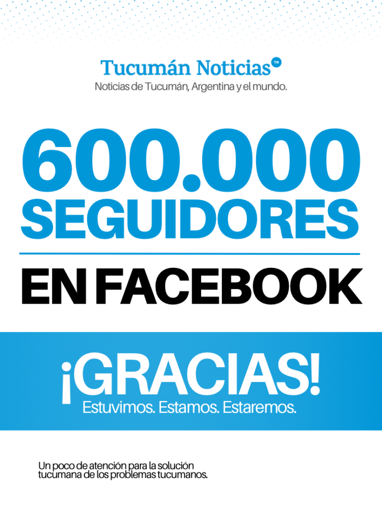 Tucumán Noticias alcanzó los 600.000 seguidores en su cuenta oficial de Facebook, consolidando su presencia como uno de los medios digitales con mayor alcance e impacto en la provincia de Tucumán.